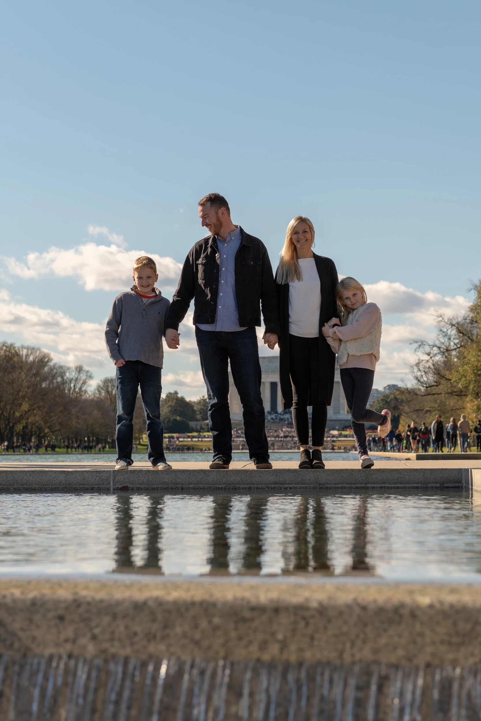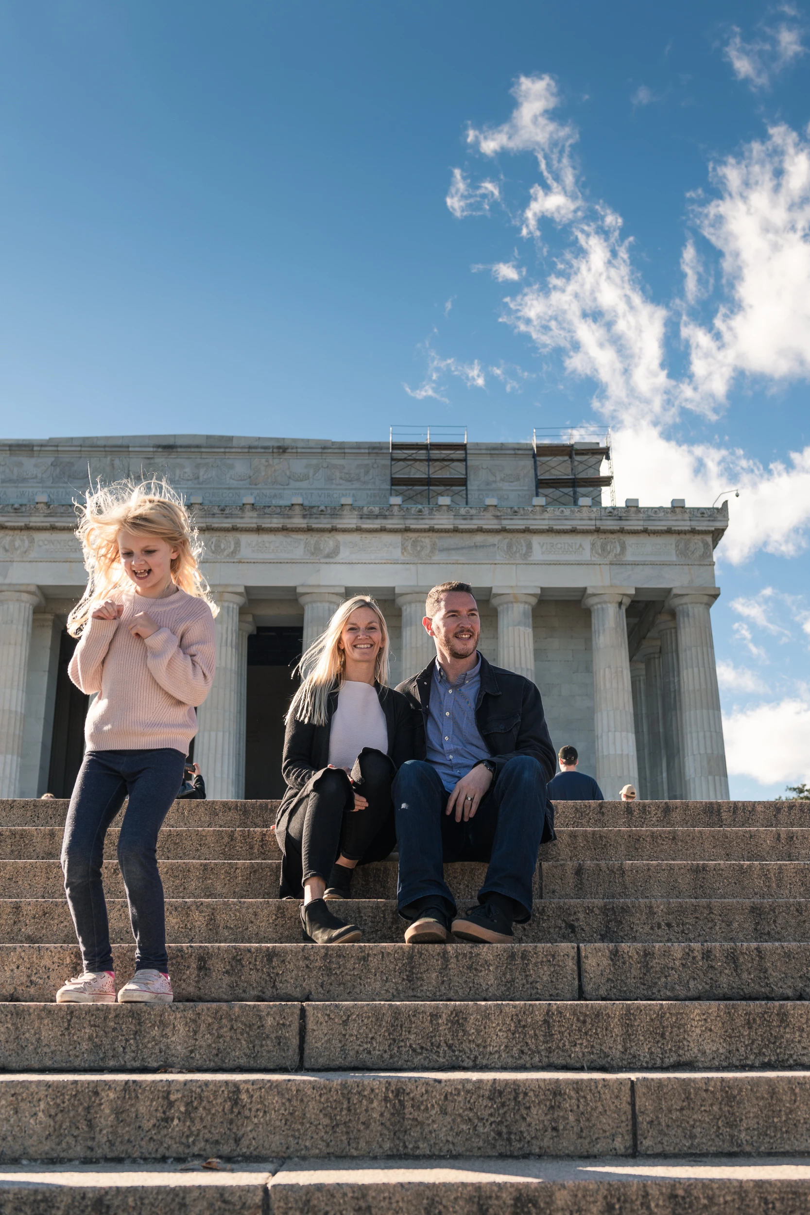 On a crisp fall day, I had the pleasure of photographing my friends and their two lively kids at the Lincoln Memorial and nearby areas. The autumn backdrop added a rich, colorful warmth to the majestic setting. We captured spontaneous moments of joy and laughter, with the kids' vibrant energy complementing the historic surroundings. The session was filled with a light and friendly atmosphere, beautifully merging the stunning fall scenery of D.C. with the heartfelt and playful spirit of their family.